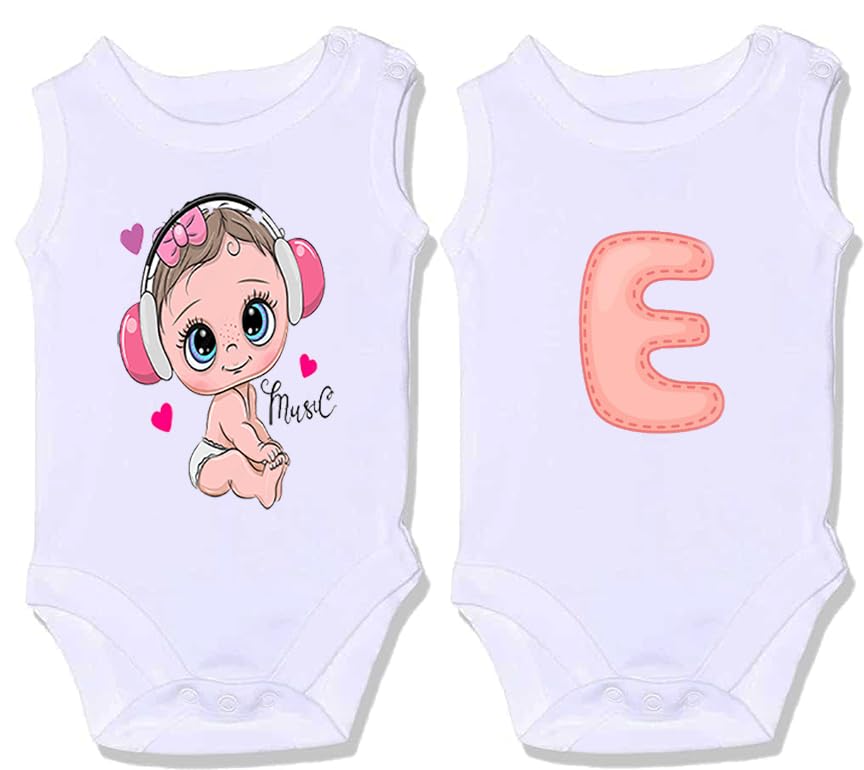 Generic - سالوبيت بكباسين قطن 100% بأشكال مميزة للبنات حديثات الولادة، قطعتين (طباعة حرف E)