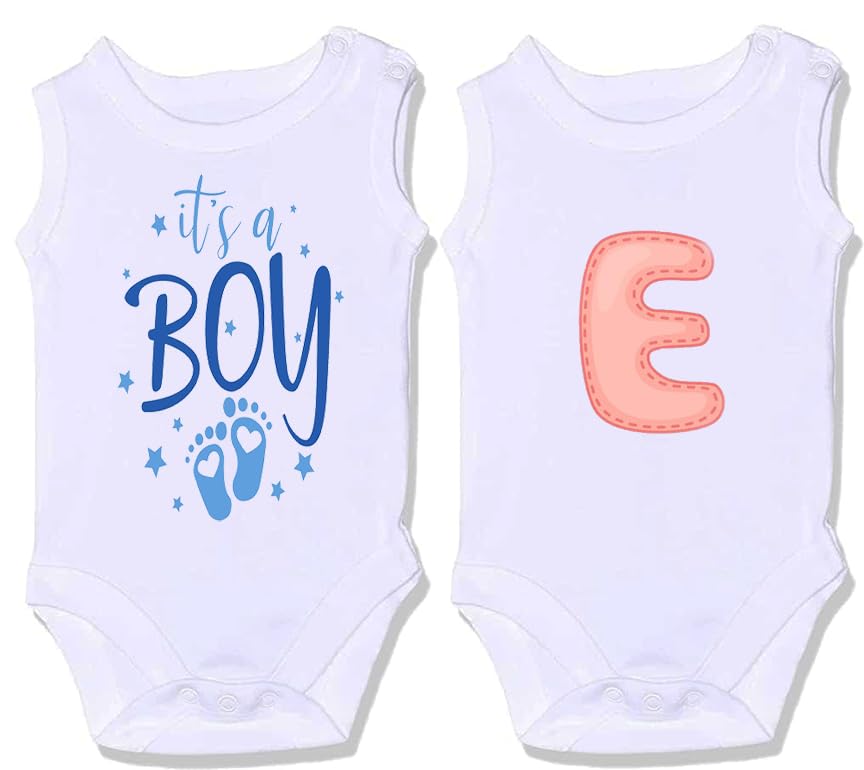 Generic - سالوبيت كات بكباسين قطن 100% بأشكال مميزة بتصميم عبارة "ITS A BOY" وحرف (E) لحديثي الولادة، قطعتين