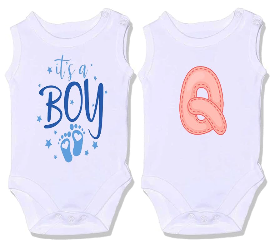 Generic - سالوبيت بكباسين قطن بنسبة 100% بأشكال مميزة بتصميم عبارة (ITS A BOY) وحرف (Q) للأطفال البيبي