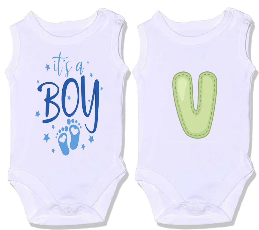 Generic - سالوبيت كات بكباسين قطن 100% بأشكال مميزة للأطفال حديثي الولادة، قطعتين بطبعة "ITS A BOY" (V)