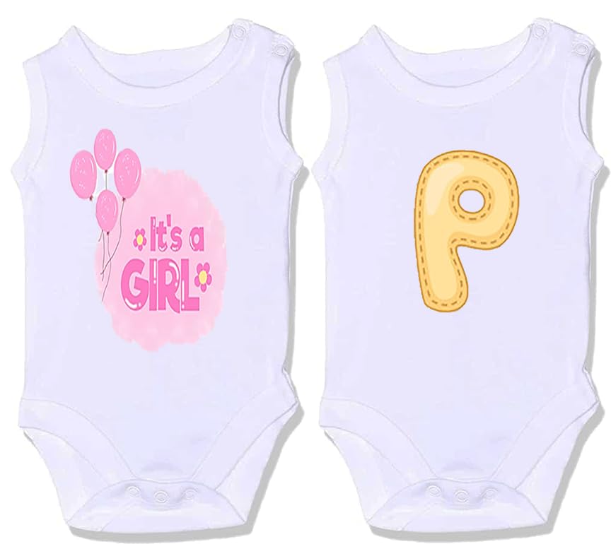 Generic - سالوبيت بكباسين مصنوع من القطن بنسبة 100% بأشكال مميزة بتصميم عبارة (ITS A GIRL) وحرف (P) للأطفال البيبي
