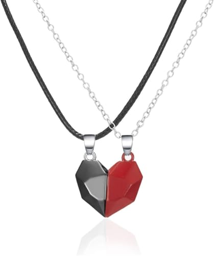 Generic - قلادتان مغناطيسيتان للزوجين وروحين واحد كوري عصري للرجال والنساء والفتيات المراهقات والصديق والصديقة - قطعتان مغناطيسيتان باللونين الاحمر والاسود