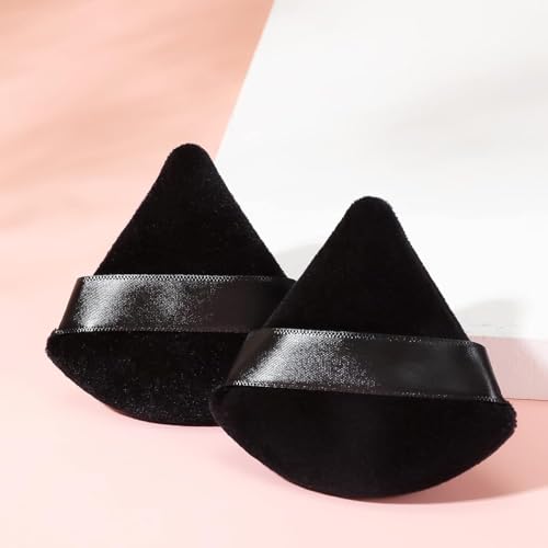 Generic - إسفنجة بودرة مثلثة لتوزيع الكونسيلر والبودرة السائبة، أداة مكياج للوجه قابلة للغسل وإعادة الاستخدام، إسفنجة كريم أساس قطيفة ناعمة للاستخدام الرطب والجاف (عبوة من قطعتين، أسود)