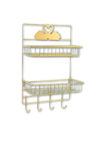 Generic - منظم مزدوج الطبقات يثبت على الحائط بتصميم سلة جمالية معاصرة، مصمم لتحقيق الكفاءة في المطابخ والمكاتب الضيقة، يبرز بلمسة نهائية أنيقة، ذهبي