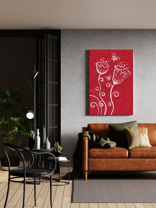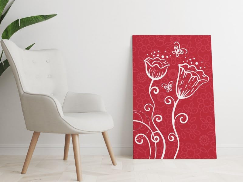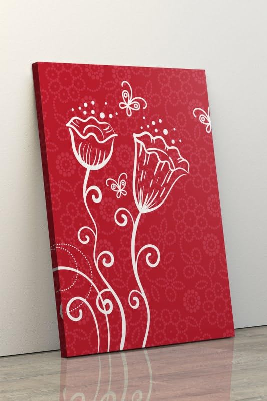 Home Gallery - لوحة فنية جدارية قماشية مطبوعة بتصميم على شكل زهرتين بلون أبيض خلفية فوشيا مقاس 1.20 متر×80 سم من هوم جالاري