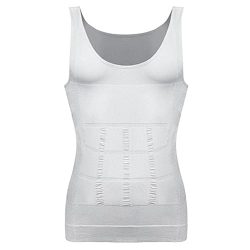 generic - قميص داخلي بدون اكمام لتنحيف الجسم والخصر للرجال مع ضمان لمدة عامين ضغط للصدر للتحكم في البطن ابيض L 693097