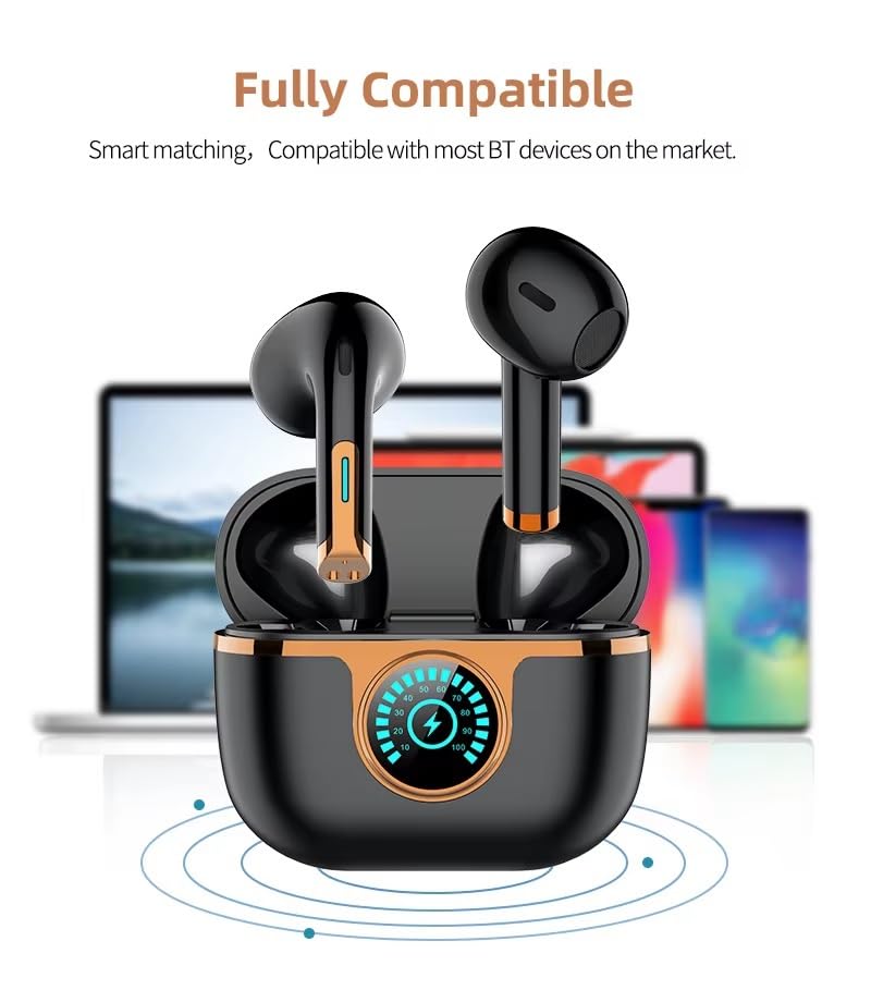 Generic - سماعة بلوتوث TWS موديل V5.3 – شاشة ليد لمعرفة مستوي الشحن – اقتران تلقائي – صوت مستقر وواضح – لون أسود