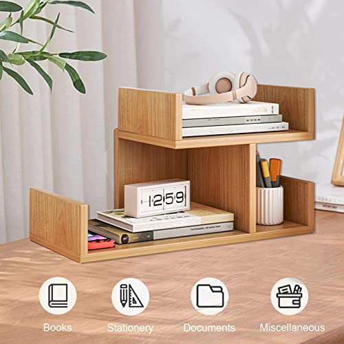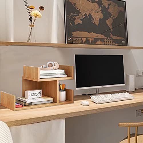 TWSOUL - توصول خزانة كتب لسطح المكتب، ارفف طاولة، حامل رف خشبي، منظم تخزين، رف سطح المكتب يمكنك تركيبه بنفسك، ارفف كتب للمنزل والمكتب والمدرسة (اصفر)، ناعم