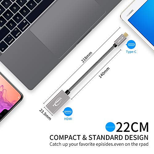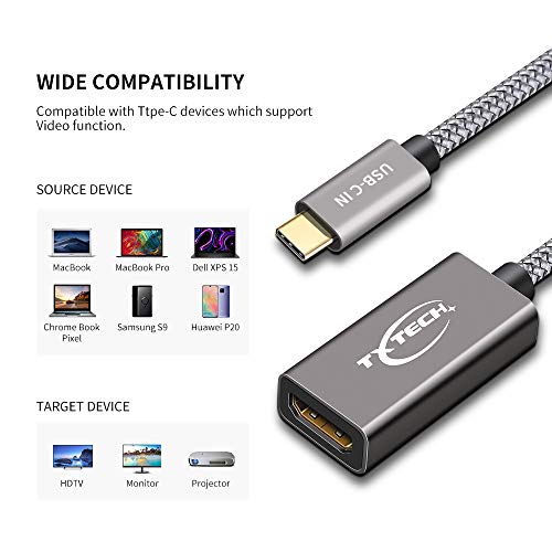 TXTECH - محول USB-C الى HDMI (4K @60Hz) من تكستيك - متوافق مع ابل ماك بوك برو/ اير/ ايباد برو 2018/2017/ 2018، جالاكسي S10/S9، سيرفس بوك 2 والمزيد - رمادي