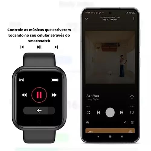 - متوافقة مع نظام iOS واندرويد، هذه الساعة الذكية التي تعمل بالبلوتوث سهلة الاستخدام والمزامنة مع أي موبايل. يمكنك حتى التحكم في الموسيقى مباشرة من معصمك.