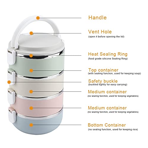 Tyenaza - لانش بوكس بينتو من 4 طبقات من تينازا، مصنوع من الفولاذ المقاوم للصدأ، تصميم حراري قابل للتكديس ومانع للتسرب مناسب للأطفال والبالغين للمدرسة والمكتب والعمل والمنزل والنزهات، سعة 2800 ملليلتر