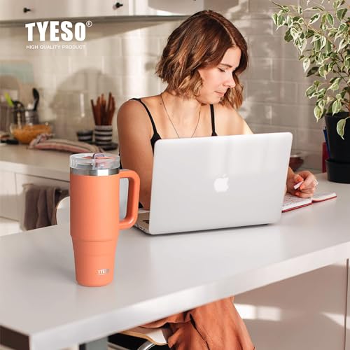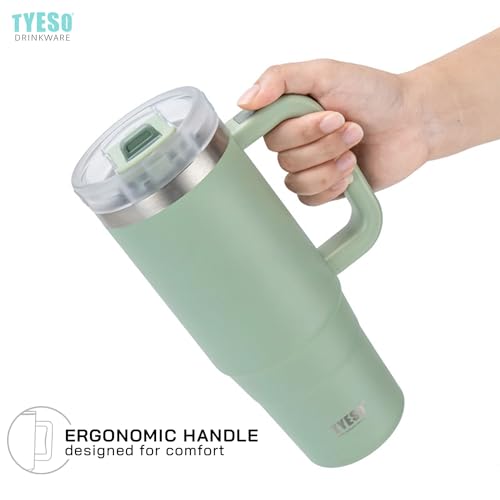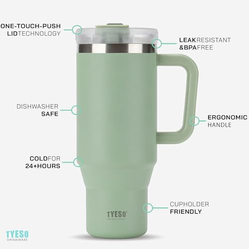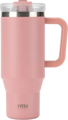 TYESO - كوب حراري بيد وغطاء شفاطة بتصميم زجاجة مياه من الفولاذ المقاوم للصدأ قابل لإعادة الاستخدام بهيكل عازل للمشروبات الساخنة والباردة للقهوة مثلجة والشاي والمشروبات الباردة والساخنة من تيزو، 1.8 لتر، وردي