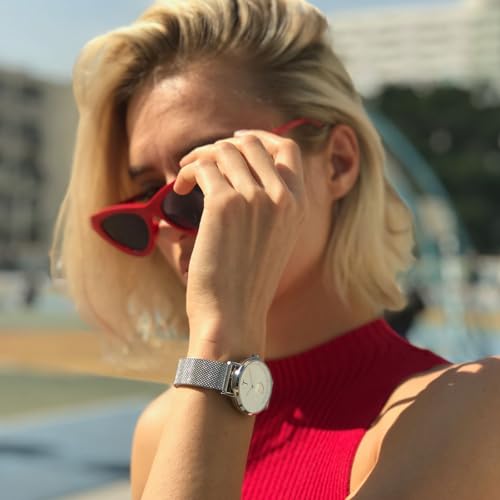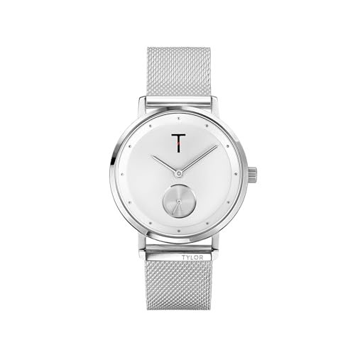 Tylor - ساعة هولا ستانلس ستيل للنساء من تايلور TLAJ008، مقاس 34 ملم، فضي/ابيض، تناظري