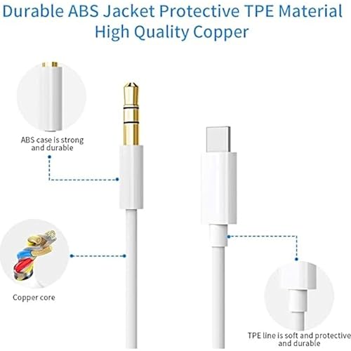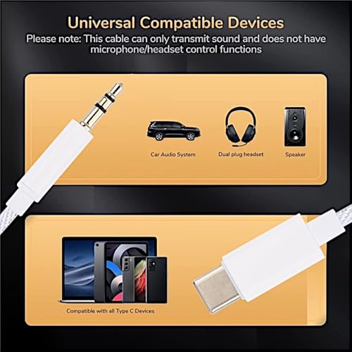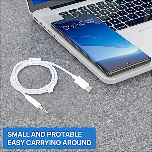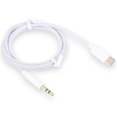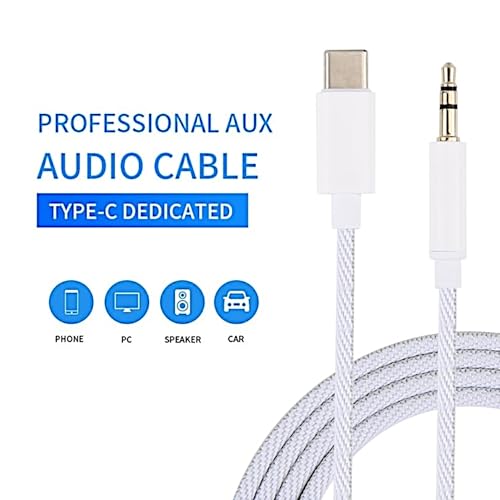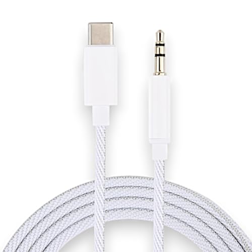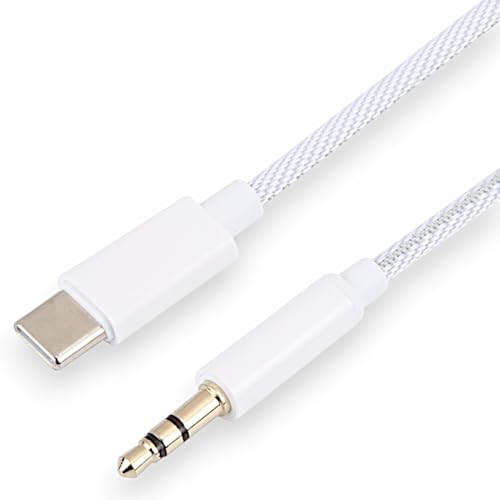 Generic - كابل USB C إلى مقبس AUX ذكر 3.5 ملم، مصنوع من النايلون المضفر ومتوافق مع موبايلات سامسونج، محول كابل USB C إلى AUX مقاس 3.5 ملم للسيارة وأجهزة نوت 10 وجوجل بيكسل وهواوي (أبيض)