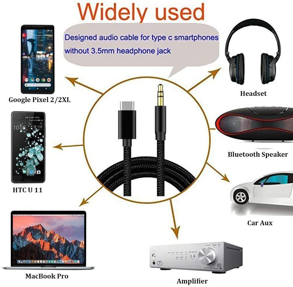 Generic - كابل صوت USB ذكر النوع سي إلى سي، 3.5 ملم، أبيض