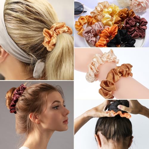 - 8 توك شعر حريرية أنيقة باللون البرتقالي الكافي، تتماشى تمامًا مع الملابس والمناسبات المختلفة توك الشعر المرنة المصنوعة من الساتان متعددة الاستخدامات وتناسب أي نمط