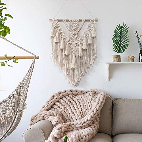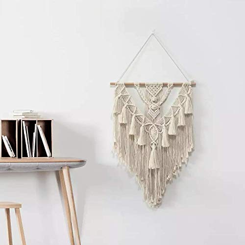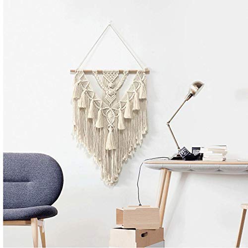 - تتميز هذه المكرمية الجدارية بخيوط سميكة مصنوعة من خيوط من القطن النقي 100%. جودة ومتانة فاخرة: تمنحك الفن الجداري الجميل إحساسًا بالانسجام والراحة في غرفتك.