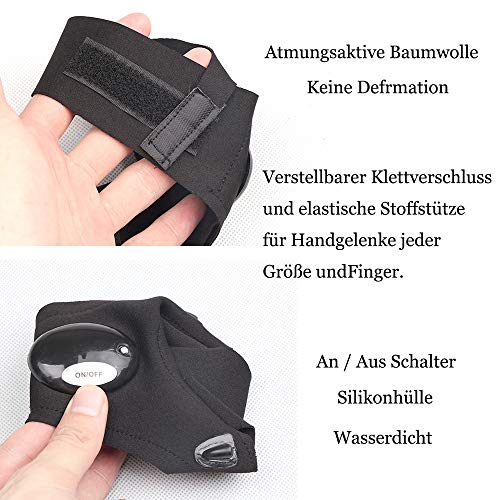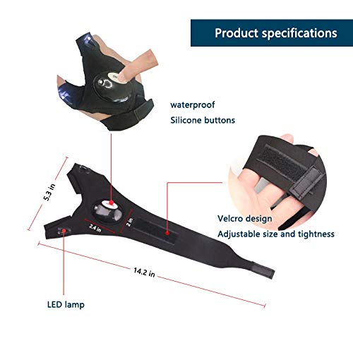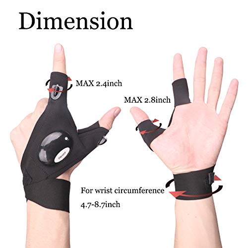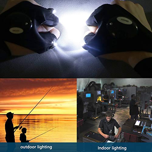 TYXSHIYE - قفازات صيد من تيكسشاي، 2 قفازات مصباح LED مقاومة للماء بدون اصابع حزام سحري لاصلاح قفازات الصيد والعمل والتخييم والانشطة الخارجية