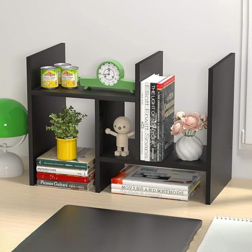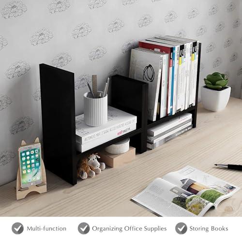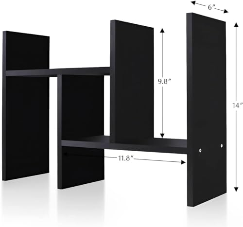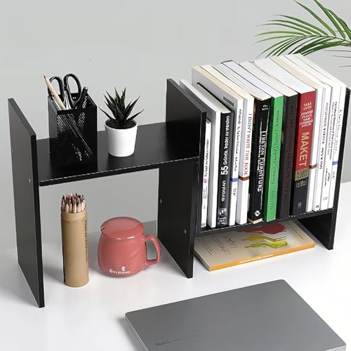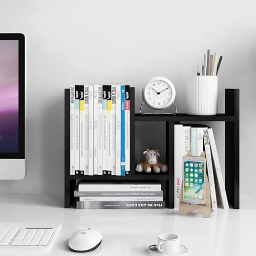Generic - رف كتب خشبي لسطح المكتب من تزويق خزانة قائمة بذاتها قابلة للتوسيع أرفف منظمة تخزين صغير برج للكتب والمجلات أسود