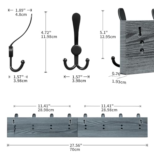 - 👍【مفصل دوار ولسان】- هيكل نقر ولسان يربط مكتبين خشبيين صغيرين في واحدة كبيرة واحدة هي أكبر ميزة فريدة من نوعها لخطافات المعاطف المثبتة على الحائط. إنها لا تُظهر الإبداع البشري فحسب، بل تضيف مجموعة متنوعة من خيارات التركيب اهتمامًا إلى رف المعاطف الجداري العادي.