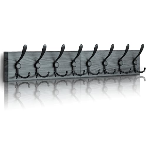 U-Chain - حامل معاطف يثبت على الحائط - رف خشبي مع 8 خطافات معدنية ثلاثية لتعليق المعاطف وحقائب الظهر وغيرها مقاس 28 انش لمدخل بيت المزرعة اسود وازرق 75.0 رطل 75.0