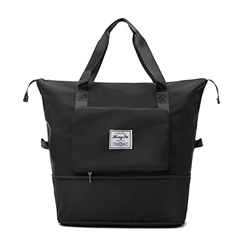 U/F - شنطة بسعة كبيرة قابلة للطي بحجم محمول وخفيف الوزن من قماش اوكسفورد مقاوم للماء دفل للرياضة وصالة الالعاب الرياضيات والعطلات أسود يواف