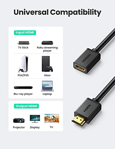 - كابل وصلة HDMI لتطويل أي كابل HDMI وتوصيله بأي جهاز قياسي بمنفذ HDMI متوافق مع التليفزيونات HD عالية الدقة ومشغل روكو وومشغل أقراص DVD بلو راي ووحدات تحكم الألعاب والستالايت ومستقبل ايه في و علبة كابل HD عالية الدقة وPS5 PS4 PS3 ووي يو و سماعة رأس VR اوكولوس وكمبيوتر بويندوز 10 والتليفزيونات المعلقة على الحائط وغيرها الكثير