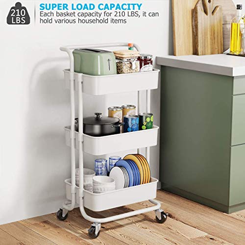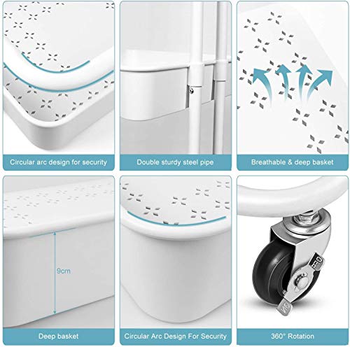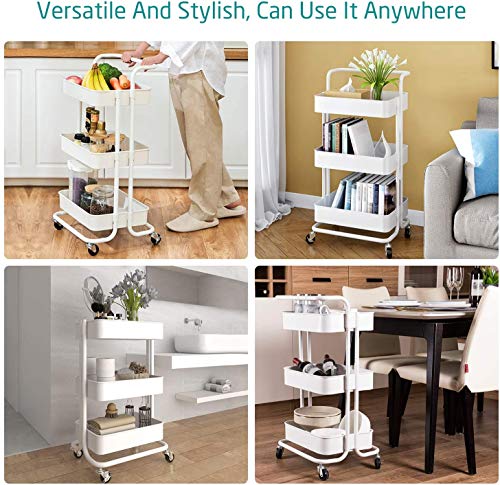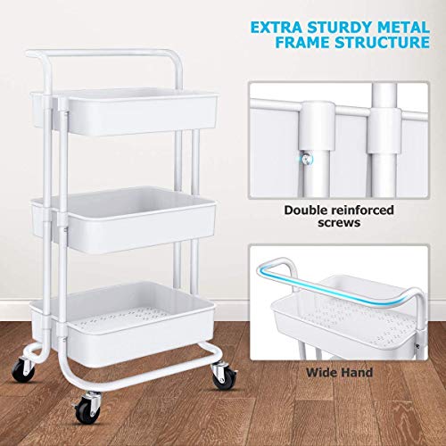 DRAMA HOME - عربة مرافق دوارة بـ3 طبقات متعددة الاغراض مع مقبض وعجلات قابلة للقفل للمكياج وللمطبخ والحمام والمكتب من يو-هوم - لون ابيض