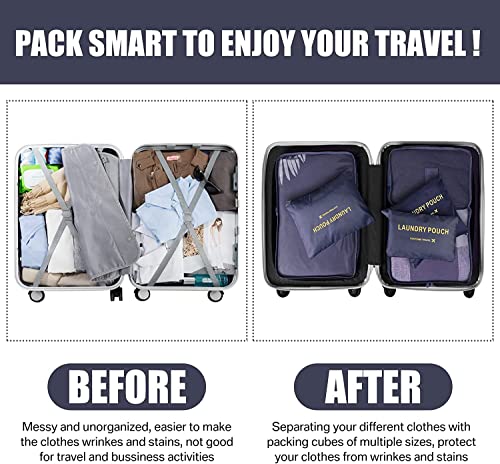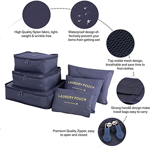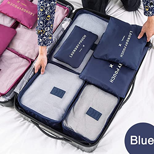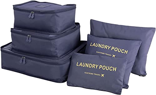 U HOOME - يو هووم 6 قطع من منظم امتعة السفر مكعبات التعبئة حقيبة تنظيم الامتعة سفر لحقيبة ازرق ايه نايلون