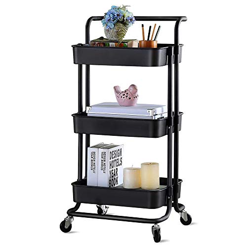 U-HOOME - عربة ترولي برفوف قابلة للازالة للتخزين من يو هوم، للحمام مع مسند نحيف للذراع (3 طبقات، اسود)