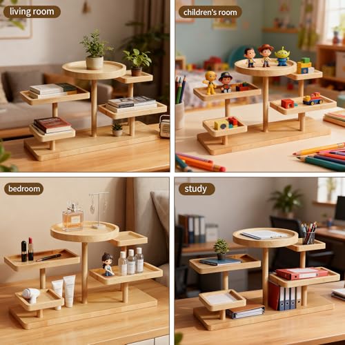 U-HOOME - حامل عرض خشب متعدد الطبقات، رف عرض علوي متعدد الاغراض لغرفة المعيشة من يو هومي، منظم رفوف متعدد الطبقات لعرض المجوهرات والاكسسوارات