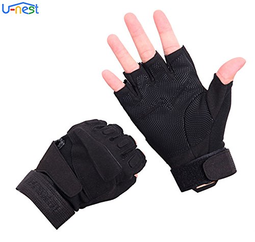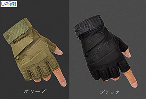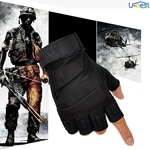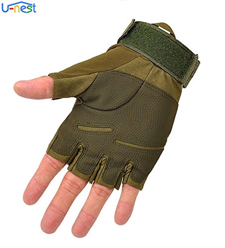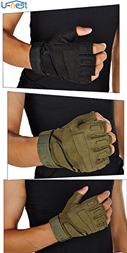 U-NEST - قفازات تكتيكية بدون أطراف أصابع من يو-نيست، قفازات عسكرية بدون أطراف أصابع لألعاب البقاء على قيد الحياة وتسلق الجبال وركوب الدراجة النارية والأنشطة الخارجية (أخضر + تصميم نصف إصبع، مقاس M)
