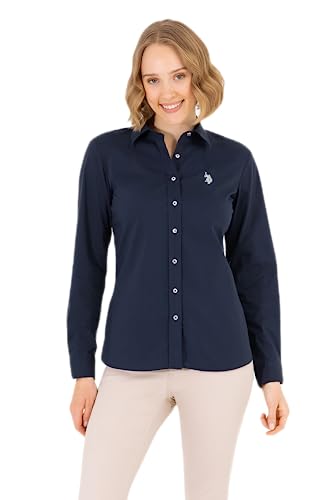 U.S. Polo Assn. - يو اس بولو اسن قميص سادة بأكمام طويلة من خامات مختلطة للنساء - مزيج القطن