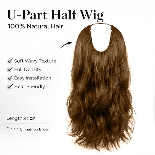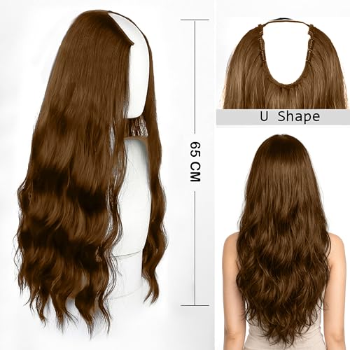 Generic - وصلة شعر على شكل حرف U - مع 7 مشابك شعر، نسيج مموج طبيعي، 65 سم، شعر صناعي كثيف خفيف الوزن، للنساء، موديل - JW291 (#10)