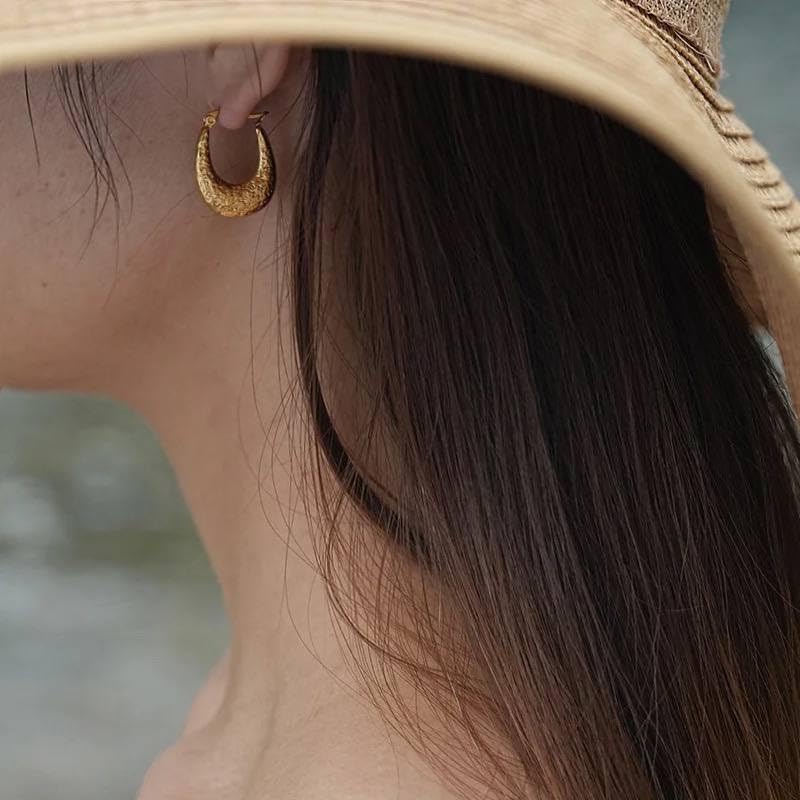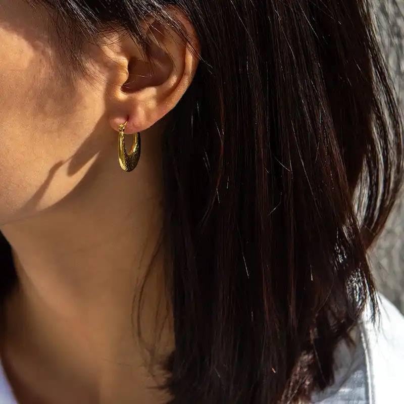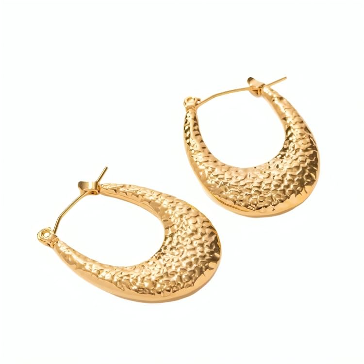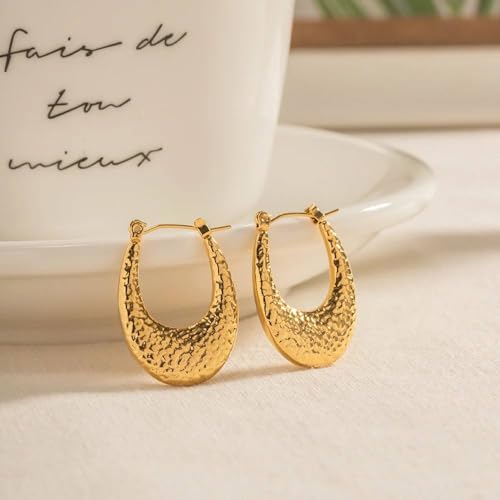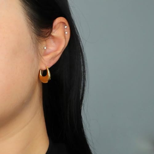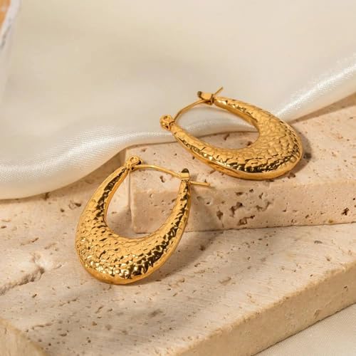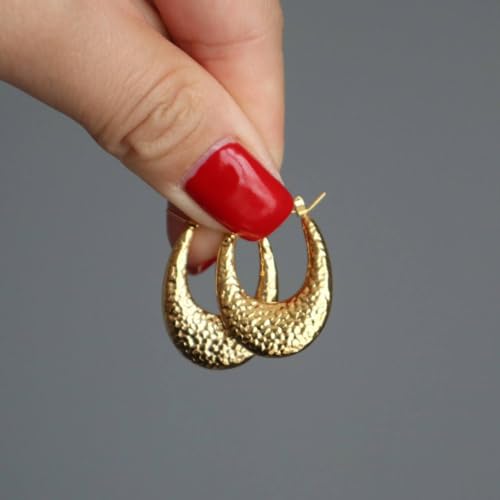 Generic - اقراط حلقية هندسية مجوفة على شكل حرف U للنساء مصنوعة من المعدن بتصميم شخصي غير عادي هدية مجوهرات ذهبي