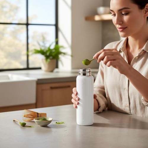 - ١) تصميم عملي: زجاجة مشروبات حرارية بسعة ٣٧٠ مل مع غطاء لولبي ومقبض مريح للحمل والتنقل