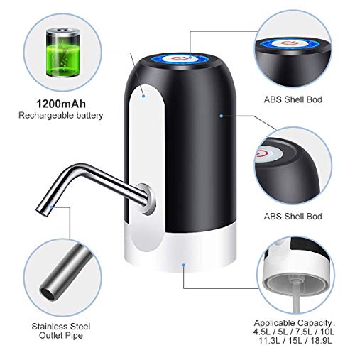 - توافق عالي:- مضخة زجاجة المياه الكهربائية مناسبة لأحجام الزجاجات المختلفة بفوهة مقاس (5.5 سم)، لذا فهي مناسبة لمجموعة متنوعة من موديلات أسطوانات الجالونات بدون فك الغطاء.