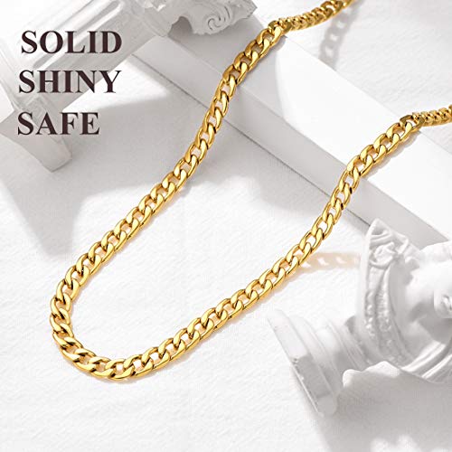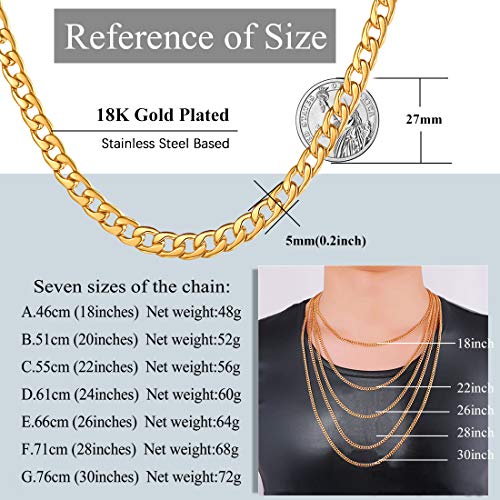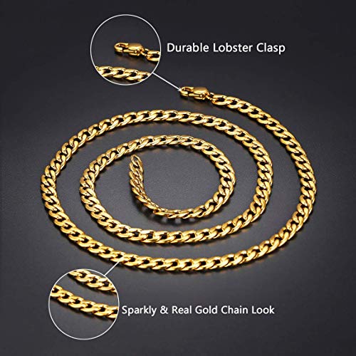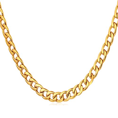 U7 - يو7 عقد ضيق بطول 18 انش | سلسلة كوبية مسطحة مطلية بالذهب للرجال والنساء، معبأة في عبوة هدايا