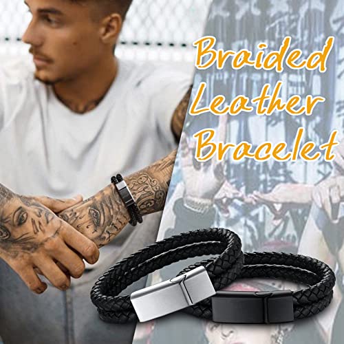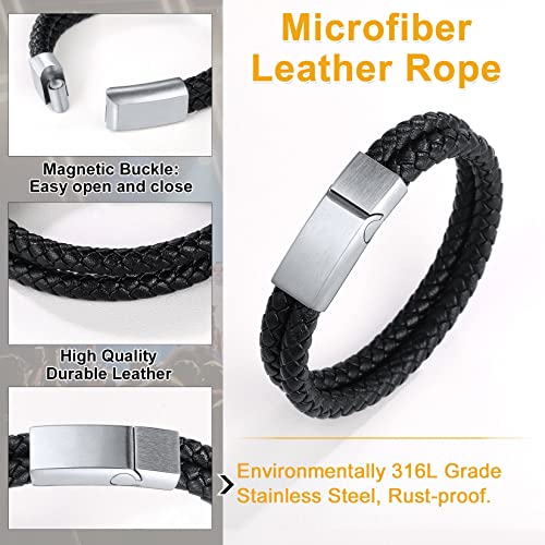 U7 - يو7 اساور حبل قماشية سوداء للرجال، سوار مغناطيسي مضفر، مجوهرات