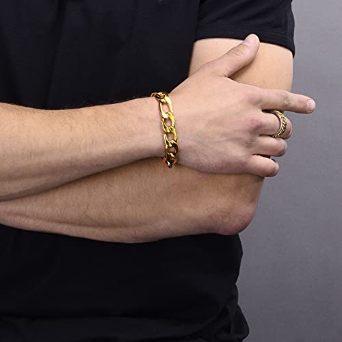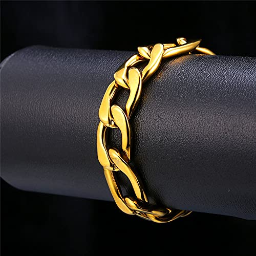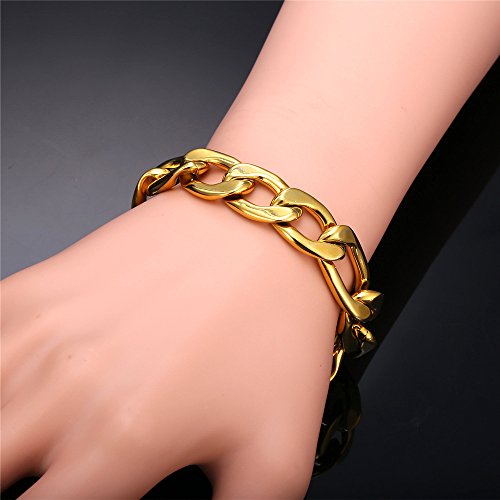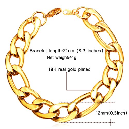 U7 - اساور لسلسلة حلقات سوار الساعة لإضفاء طابع الأناقة للرجال والمجوهرات الراقية للنساء مصنوع من الستانلس ستيل فيجارو - قمحي - حبل يو 7 - العرض 3 مم 6 9 12 طول 8.26 بوصة Medium