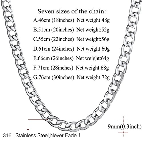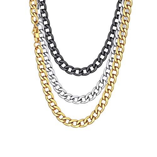 U7 - سلسلة حلقات متصلة ميامي كوبان مطلية بالذهب عيار 18 قيراط مقاس 9/12/15 ملم للرجال من يو 7، بطول 14/18/20/22/24/26/28/30 بوصة مع علبة هدايا, medium