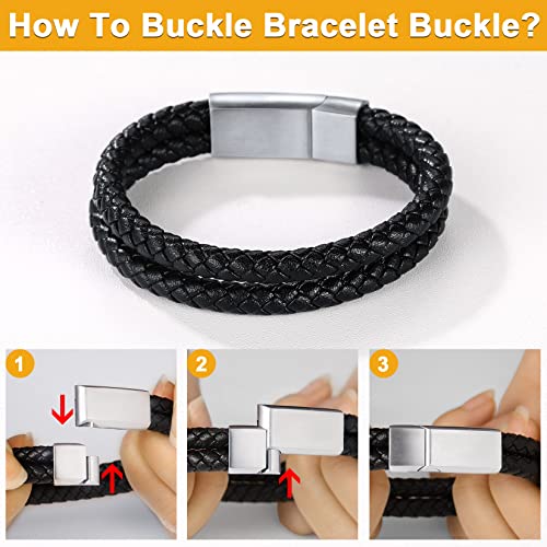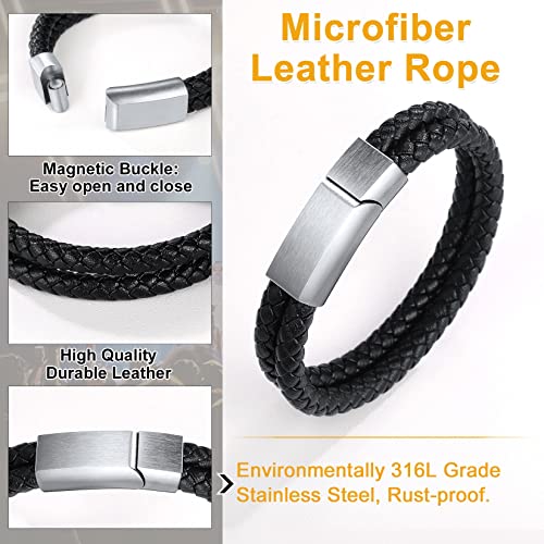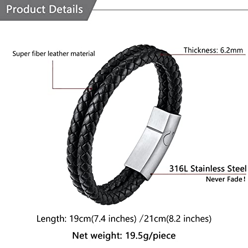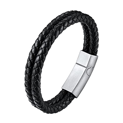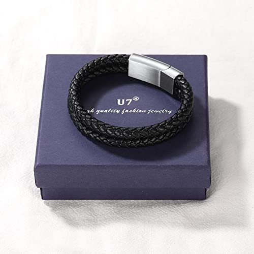 U7 - سوار جلد مضفر متعدد الطبقات وقابل للتخصيص مصنوع من صناعي اسود-بني زينة خليط معدني زنك مطلي بلاتين-اسود اكسسوار مناسب كهدية للرجال-النساء يو 7
