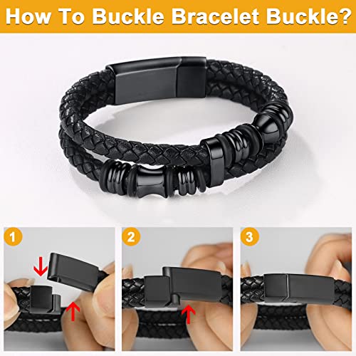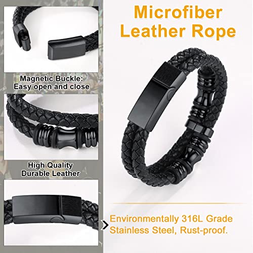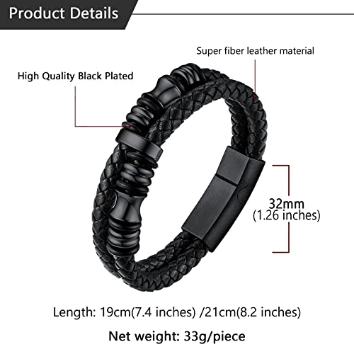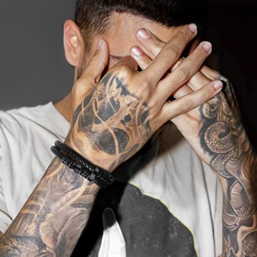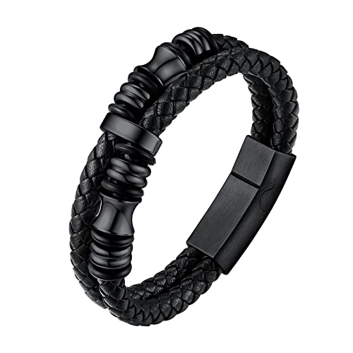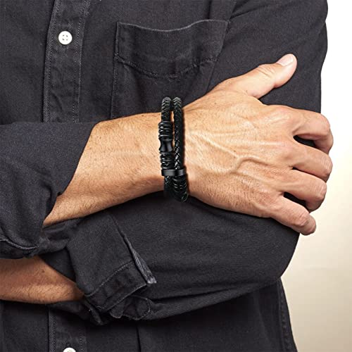 U7 - يو7 سوار جلد مضفر متعدد الطبقات للجنسين، اسود، بني