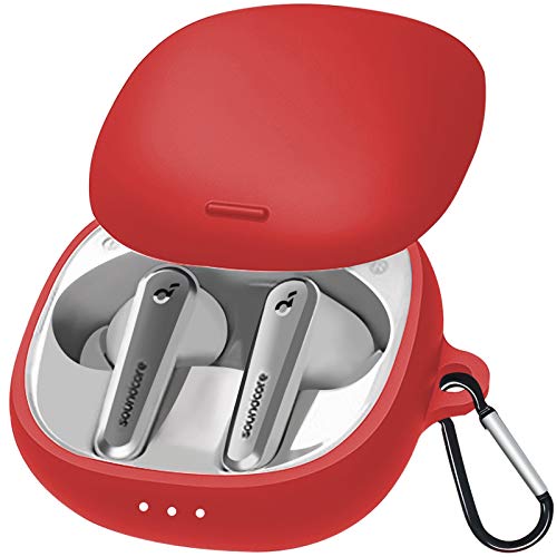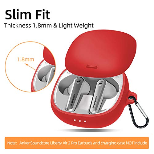 UAYH - جراب يو ايه واي اتش متوافق مع سماعات ساوندكور ليبرتي اير 2 برو، جراب حماية من السيليكون مع سلسلة مفاتيح لسماعات اير بودز انكر ساوند كور ليبرتي اير 2 برو اللاسلكية (احمر)