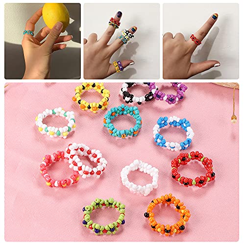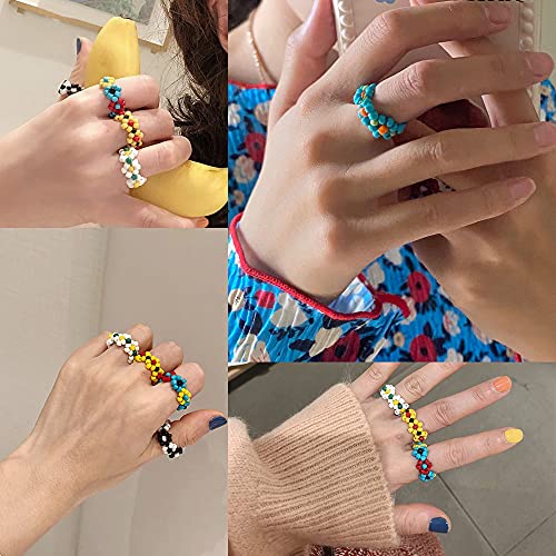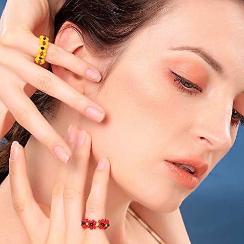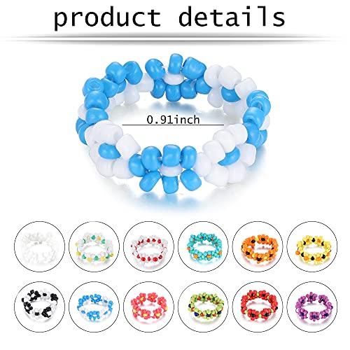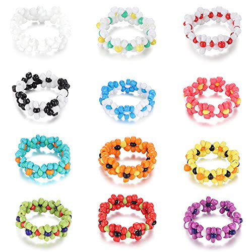 UBGICIG - مجموعة خواتم مرنة مصنوعة يدويا بتصميم زهور متعددة الالوان للنساء والبنات من يوبكيجيك - 12 قطعة، يو بي جي اي سي زجاج، بلاستيك، ستانلس ستيل