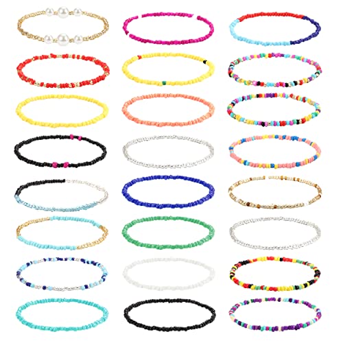 UBGICIG - خلخال خرز مصنوع يدويًا من حجر زركونيا مكعب للنساء والبنات من ابجيسيج، مجموعة من 24 قطعة