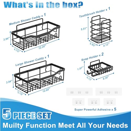 Ubyhome - رف منظم للحمام مكون من 5 قطع من يوبي هوم، منظمات دش الحمام اللاصقة، منظم حائط منزل المزرعة داخل المنزل، ملحقات ديكور ار في، اساسيات الشقة الاولى