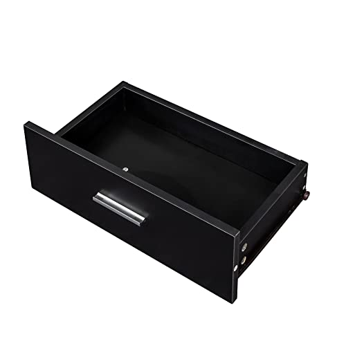 Ucloveria - طاولة مكياج مع درجين من يوكلوفيريا، مكتب شعر عصري بسيط مع 3 رفوف مفتوحة، طاولة زينة مع خزانة كبيرة، طاولة زينة خشبية لغرفة النوم والحمام، لون أسود