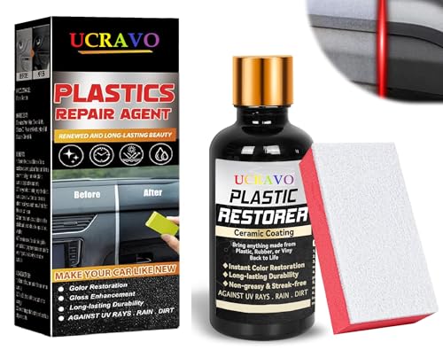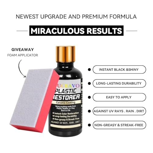 UCRAVO - مُرمم بلاستيك للسيارة، مُثبت فعاليته في استعادة اللون الأسود، طلاء سيراميك دائم مقاوم للماء، يُعيد الحيوية إلى البلاستيك والمطاط والفينيل على الفور، مقاوم للماء من يوكرافو، عبوة من قطعتين
