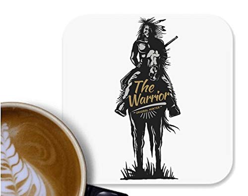 UDNAG - قاعدة اكواب شاي وقهوة من خشب مضغوط MDF بتصميم صياد محارب من الهنود الحمر للمنزل والمكتب من اوديناج [90×90 ملم]